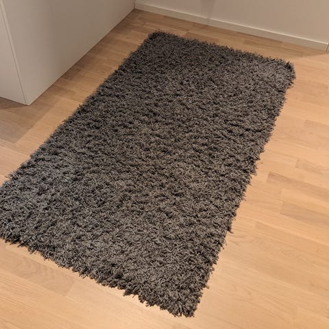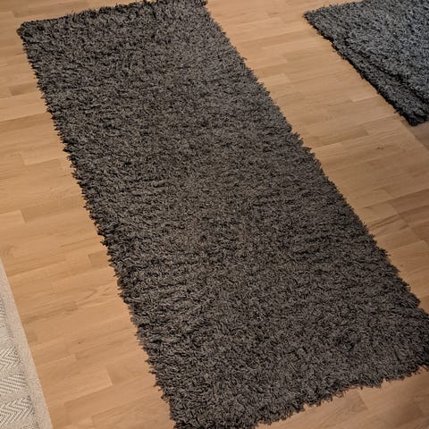 Harmaa nukkamatto, koko 80x150 cm. Matossa on harmaa, monisävyinen nukkapinta. 3 samanlaista mattoa.