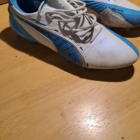 Puman KING laatunappikset, koko EUR 44. Yhden kesän potkitut. Nuoren jalka kasvaa, niin ei mene toista kesää. Siistit ja todella vähän käytetyt.