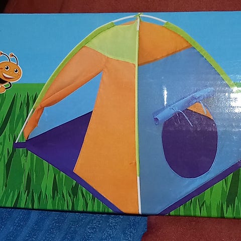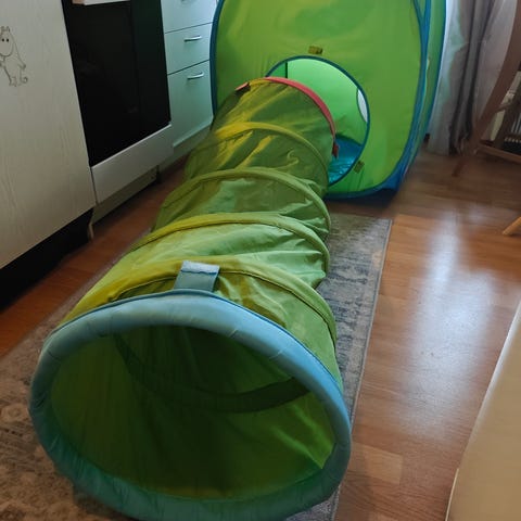 Myydään tarpeettomaksi jäänyt lasten leikkiteltta (kioski). Hyvässä kunnossa.