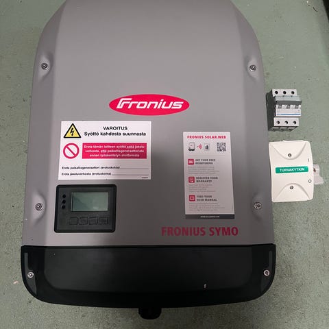 Myydään hyväkuntoinen ja takuun alainen Fronius Symo 8.2-3-M invertteri wifi data loggerilla. Takuu voimassa 7.2.2028 asti