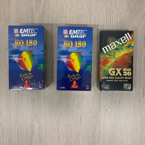 TDK EHG180 ja Maxell M 180 VHS-videokasetit 180 min