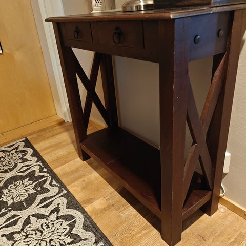 Puinen sivutaso. Korkeus 75cm, leveys 120cm ja syvyys 36 cm.