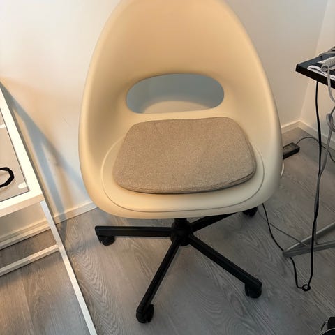 Ikean Loberget/Malskär -työtuoli on mukava istua kulhomaisen istuimen ja pyöristetyn selkänojan vuoksi. Korkeus säädettävissä 46-60cm korkeuteen. Pyörät lukkiutuu, kun tuolia ei käytetä, joka takaa sen pysymisen paikallaan. Helppo puhdistaa. Kauppaan kuuluu kuvan mukainen harmaa istuinpehmuste.