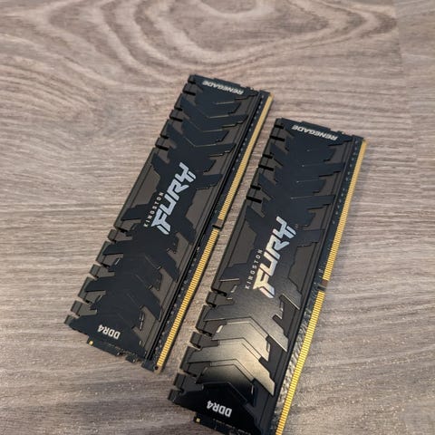 Myynnissä kuvien mukainen 3200MHZ Cl18 DDR4 16GB (2x 8GB) kit. Sarjanumero HX432C18FB2K2/16. Postitus tai nouto Jyväskylästä.