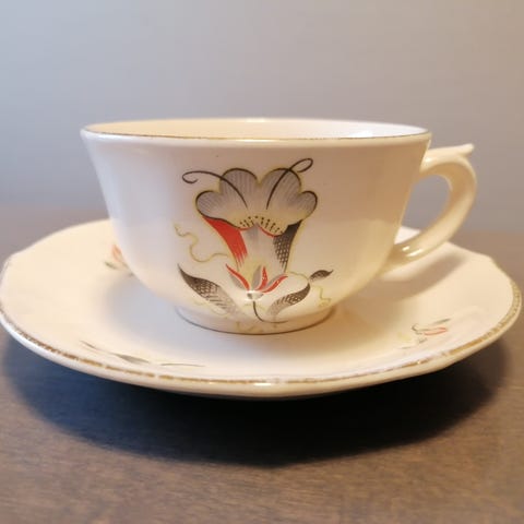 Arabia ping pong kahvikuppi ja lautaset