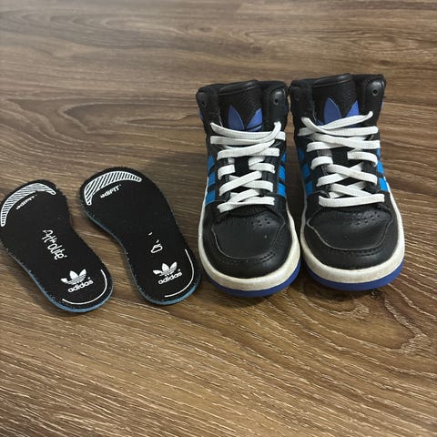 Adidas lasten lenkkarit, koko 24, sekä Lupilu paljasjalkakengät, koko 24. Yhteishinta.
