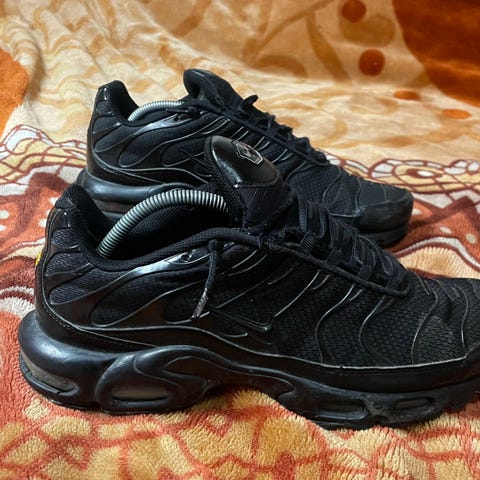 Nike Air Max Plus OG tennarit. Koko EU 45 (EUR 44,5 valmistajan merkinnän mukaan). Kunto on hyvä pientä jälkeä on sivupohjassa mutta varmaan aika hyvin saa jynssättyä pois jos haluaa. Aidot Niken kengät kyseessä. Voin postittaa postilla tai matkahuollolla.