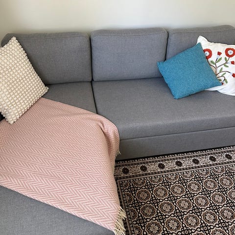 Sohvan saa kuljetuksen ajaksi kolmeen osaan.