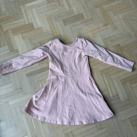 Kaiko mekko tytöille, koko 98 / 104. Pitkähihainen oranssi puuvillamekko, jossa poimutettu helma. Pääntiessä takana ristiin menevät nauhat. Materiaali puuvillaa.