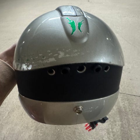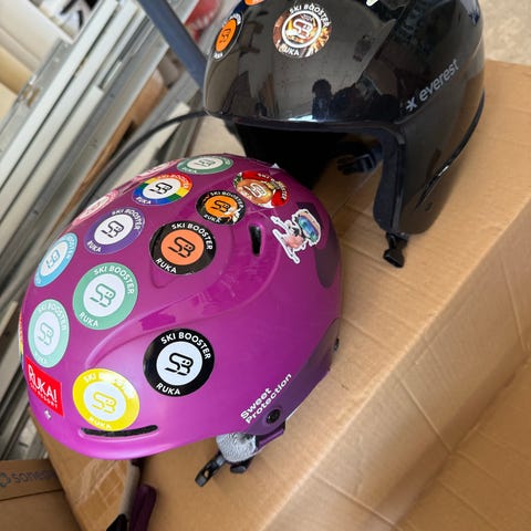 Hyvässä, käytetyssä kunnossa oleva kypärä, ollut luisteluharjoituksissa kahdella lapsella. Eläintalous.