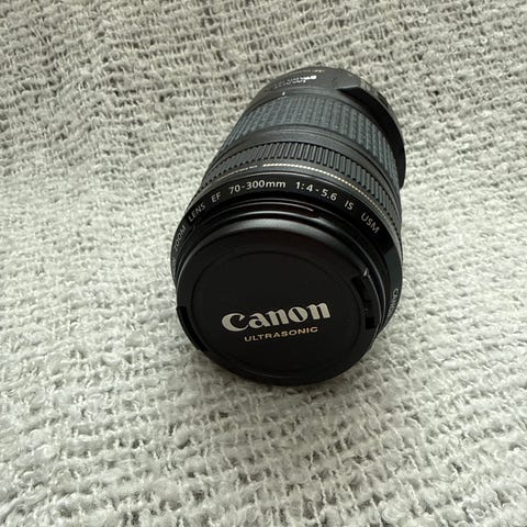 Canon EF 70-300mm f/4.5-5.6 DO IS USM on musta telezoom-objektiivi, jossa on EF-bajonetti Canonin järjestelmäkameroille. Polttovälialue on 70–300 mm ja valovoima f/4.5–5.6. Objektiivissa on diffraktiivinen optiikka (DO), kuvanvakain (Image Stabilizer) sekä USM-ultraäänitarkennusmoottori automaattitarkennusta varten. Mukana on vastavalosuoja ET-65B ja pehmeä objektiivilaukku LP1116. Objektiivi käynyt tarkastuksessa. Vähäistä pölyä sisässä, ei vaikuta kuvan laatuun, siistissä kunnossa, otekumi harmaantunut, toiminnot ok.