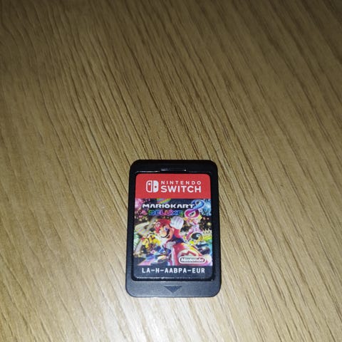Nintendo Mario Kart 8 Deluxe Nintendo Switch -peli. Fyysinen pelikasetti ja kotelo. Peli on tarkoitettu Nintendo Switch -konsolille (ykkönen) ja sisältää moninpelivaihtoehtoja sekä erilaisia ratoja ja ajoneuvoja karting-ajoihin Super Mario -maailman hahmoilla.
