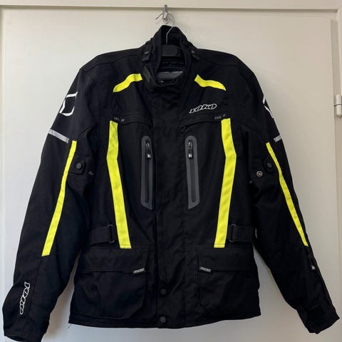 Takissa on musta-pinkki väritys ja valkoisia yksityiskohtia. Malli on suunniteltu moottoripyörä- tai muun ajokäytön suojatakiksi. Sisäpuolella on irrotettava tai avattava vuori ja verkkovuori, jotka parantavat käyttömukavuutta. Hihansuissa ja helmassa on vetoketju- ja nepparisäätöjä istuvuuden säätöön. Takissa on useita taskuja ja heijastavia yksityiskohtia näkyvyyden parantamiseksi. Sopii esimerkiksi moottoripyöräilyyn tai muuhun ajovarustekäyttöön. Housut ovat koko mustat.
