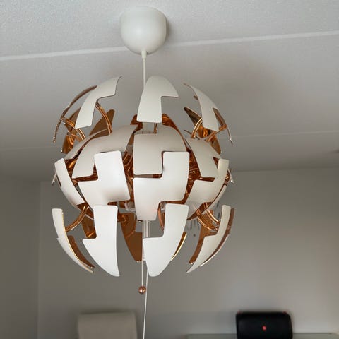 Ikean kattovalaisin halkaisija 30 cm. Korkeus 30/43 cm. Ulkopinta alumiinia