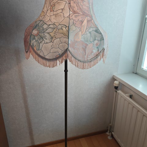 Vanha toimiva jalkalamppu korkeus 142cm varjostimen