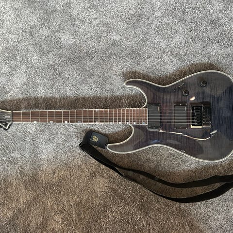 Tästä pitkään käyttämättä ollut, hyväkuntoinen sähkökitara Floyd Rose -tremololla ja vibrakammella. Maalauksessa hieno sävytys, ei syvämusta.