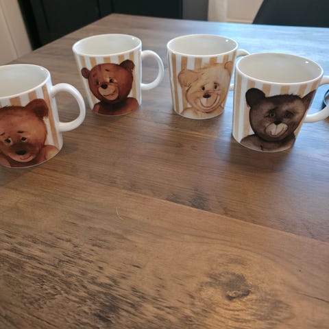 Minna Immosen suunnittelemat Hertta-muki muki ja Sulo- muki nallekuviolla. Tuotanto lopetettu. Posliiniset kahvamukit, joissa vaaleansävyinen, raidallinen koristelu ja eri ilmeisiä nallehahmoja. Mukit soveltuvat arki- ja kahviastiastoon sekä keräilyyn. Pohjassa Arabia Finland -leima ja teksti Hertta/Sulo Design Minna Immonen.