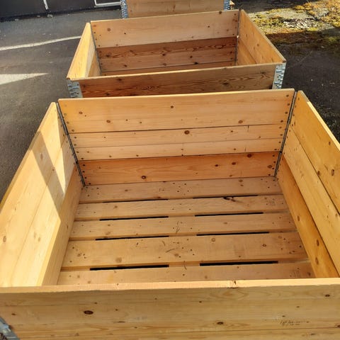 Puinen lavalaatikko metallivahvikkein. Koostuu puisista lavakauluksista ja se on kiinnitetty puulavalle. Reunoja tukevat metalliset kulmavahvikkeet. Soveltuu esimerkiksi varastointiin, kuljetukseen tai puutarhakäyttöön, kuten säilytyslaatikkona tai viljelylaatikon runkona.Lava 80x 120 1 kpl ja pohja 1 kpl ja Lava 100 x 120 näitä 3 kpl. Lavakauluksia 12 kpl Lavoja ja pohjaa ei ole pakko ottaa mukaan .Hinta koostuu vain kauluksista . Nouto Haminasta sopimuksen mukaan.Säilytetty sisätiloissa.