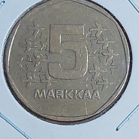 Myynnissä 5 kolikkoa ja yhden kolikon hinta on 4 euroa.