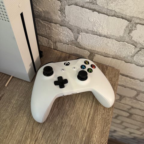 Kaksi Xbox one ohjainta. Kummankin ohjaimen vasen tatti driftaa.