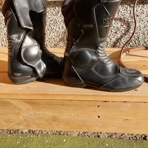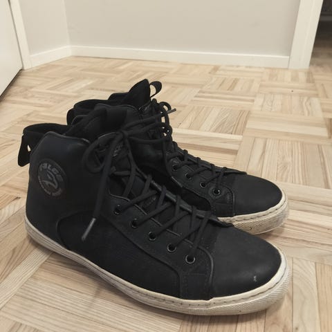 Koko 42 moottoripyöräkengät, siistissä kunnossa. Mukavat jalassa, verrattain helppo kävellä ajopäivän aikana, suojaa nilkkaan asti. Vedenpitävät ja tasapohjaiset. Nauhat ja tarrakiinnitys ehjät.