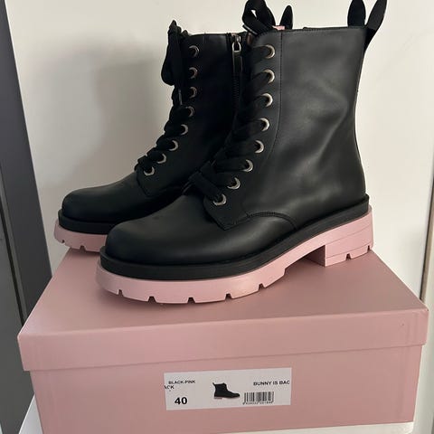Minna Parikka Combat nilkkurit / maiharit, koko 40. Mustaa kiiltonahkaa, paksu, kuvioitu kumipohja ja sivuvetoketju. Hyväkuntoiset, pohjissa ei juurikaan kulumaa. Nouto tai postitus 8,90€.