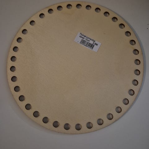 Puinen soikea pohjalevy, jonka reunoilla on tasavälein poratut reiät. Sopii esimerkiksi käsityö- ja askarteluprojekteihin, kuten koreihin, laatikoihin tai muihin rakenteisiin, joissa tarvitaan kiinnitysreikiä reunaan. Materiaali on käsittelemätöntä puuta, jonka voi halutessaan hioa, maalata tai lakata käyttötarkoituksen mukaan. Koko noin 25 x 15 cm