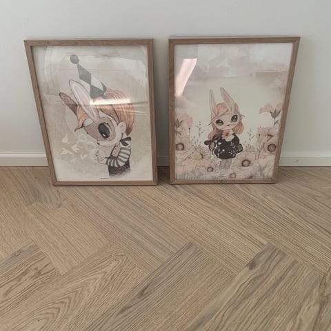 mrs.Mighetto taidejuliste puukehyksellä