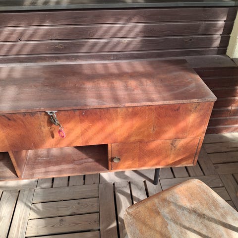 Senkki on hyvässä kunnossa ja siistit. Pyyhkäisen vielä kostealla rätillä kaikki pälyt pois ennen noutoa. Tähän mahtuu paljon tavaraa, joten sisältää hyvin säilytystilaa.
