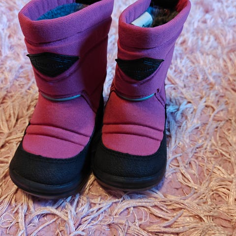 Pinkit Kuoman lämpimät talvikengät koossa 21. Hyvä käytetty kunto, toisessa kärjessä pieni nirhauma (viimeinen kuva). Huomioitu hinnassa.