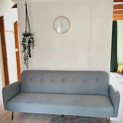 Myynnissä tilan puutteen vuoksi ylimääräinen metallisohva, josta saa myös hyvän vuoteen yhdelle hengelle. Lisäksi mukaan saa patjan ja valkoisen, puhtaan puuvillapeitteen. Tarvittaessa löytyy myös selkänojalle tyynyt ostettavaksi erikseen.