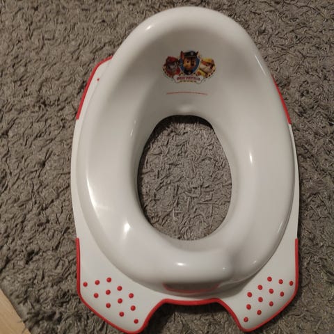 Lasten wc-istuimen supistaja, valkoinen malli harmailla kahvoilla. Sopii tavallisen wc-istuimen päälle pienentämään istuinaukkoa lapselle sopivaksi. Reunoilla on kahvat, joista lapsi voi pitää kiinni. Materiaali on muovia, pinta sileä ja helposti puhdistettava. Soveltuu wc-harjoitteluun ja wc-käynnin opetteluun lapsille, jotka siirtyvät potalta tavalliseen wc-istuimeen.