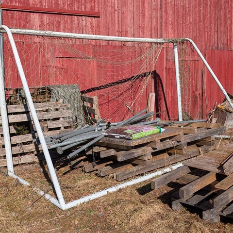 2 kpl jalkapallomaaleja, ehjä verkko. Koko n.2x5m, voi ostaa myös erikseen. Vain nouto.