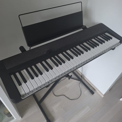 Casio CTK-591 kosketinsoitin nuottitelineellä ja jalustalla.