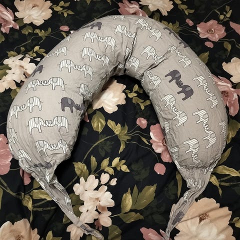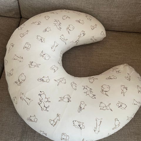 Harmaa imetystyyny. Vetoketju, joten päällisen saa pois ja pesuun. Jämäkkä ja pitää muotonsa. Siisti, vähän käytetty.