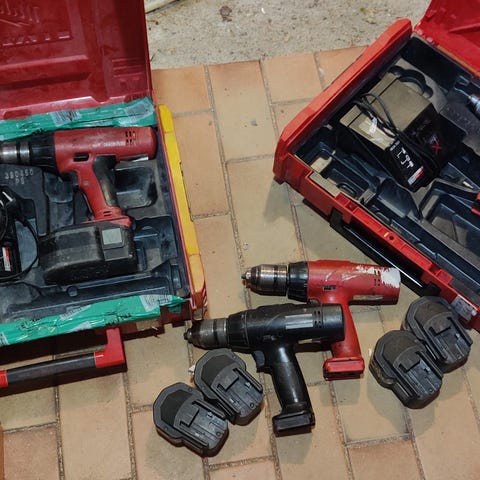 Kuten kuvista näkyy, kyseessä M18-sarjan koneet ja 5.0 Ah akku. Kaikki toimivat ja ovat käyttövalmiita. Normaalia käytön jälkeä löytyy, mutta ei vaikuta toimintaan.