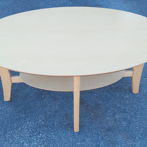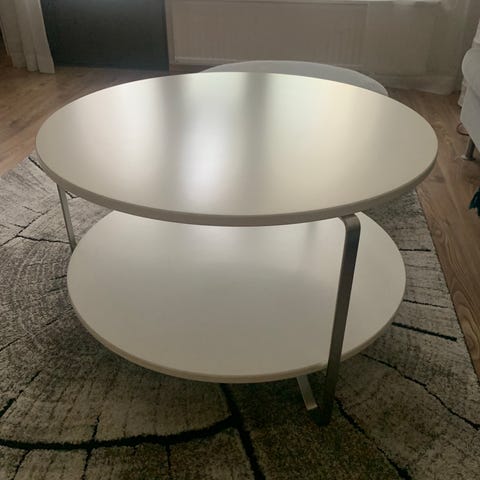 Tukeva sohvapöytä. Ohuet puunvärinen jalat. Yhdestä reunasta päällimmäinen levy 2mm koholla. Ei vaikuta käyttöön.Näkyy kuvassa.