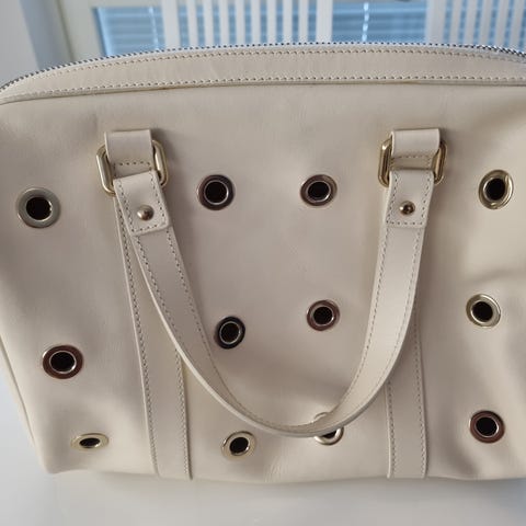 Myydään Guess merkkinen sinivalkoinen käsilaukku. Vetoketju kiinnitys ja sisällä vetoketjullinen tasku sekä kaksi muuta taskua.