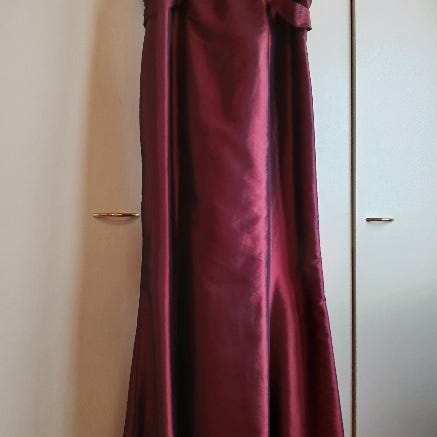 Viininpunainen juhlamekko laadukasta duchess-satiinia, Tuotelapussa koko XL. Sopii kokoa 42-44 käyttävälle. Kristallikoriste kiinteässä vyössä lantiolla. Puku on pohkeeseen ulottuva. Kuvan mallinukke on pieni/lyhyt eli kokoa ei kannat katsoa tästä. :-)
