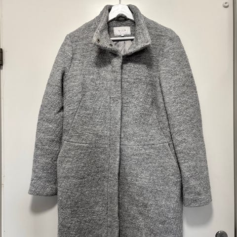 Vilan pitkä naisten kevyt villakangastakki vuorella, koko M. Sininen ruudullinen kuosi. Edessä nappikiinnitys ja kaksi rintataskua läpillä sekä alataskut. Ihanat pussihihat. Sopii käytettäväksi välikausitakkina kevääseen ja syksyyn.