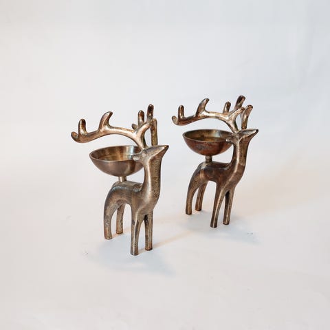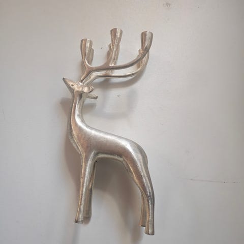 Hopeanvärinen istuva poro kynttilänjalka. Tämä on vintage ja ehkä Pentik