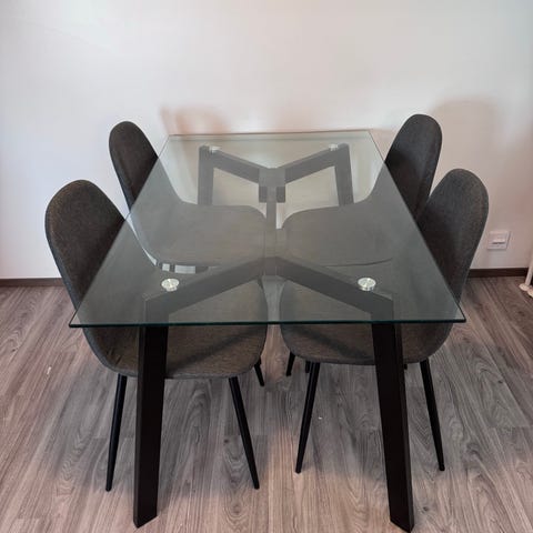 Ruokapöytä lasisella kannella