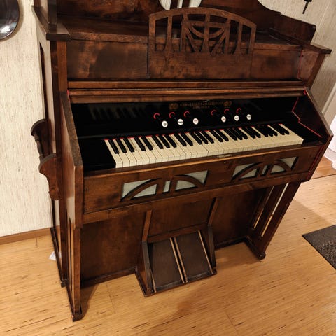 Kangasalan urkutehtaan valmistama harmoni. Soittimessa on yksi koskettimisto ja useita rekisterivipuja etupaneelissa. Kuori on puinen ja väriltään ruskea. Mukana on puinen soittopenkki. Soveltuu esimerkiksi kotiin tai harjoituskäyttöön kosketinsoittimeksi ja sisustuselementiksi.