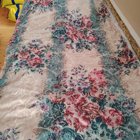 Myydään kuvan päiväpeitto ja tikattu tyynynpäällinen -setti. Uusi, käyttämätön ja avaamaton, myydään tarpeettomana.