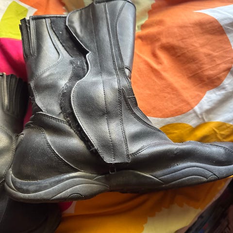 Vähälle käytölle jääneet hyvä kuntoiset moottoripyörä kengät merkkiä Frank Thomas. Koko 44. Aikonaan maksoi 99 niin menköön nyt 40 eurolla.