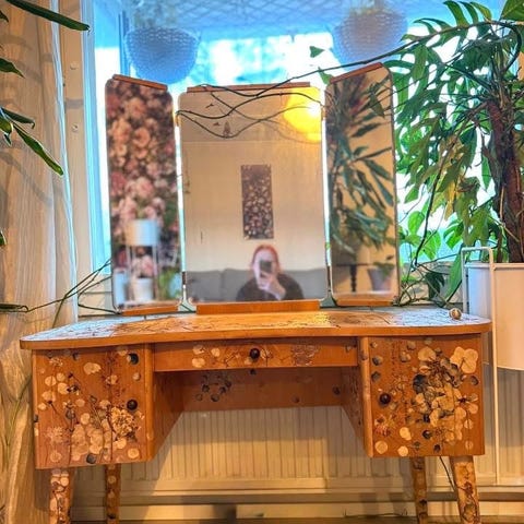 Vakoiseksi maalattu puinen siisti kampauspöytä