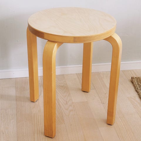 Artek Alvar Aalto A60 jakkara. Käytetty kunto ja itse kunnostettu vähän aikaa sitten. Hiottu ja lakattu. Pohjassa TKPVK merkintä, sillä ollut päiväkodissa myös käytössä. Istuinosaa paikattu puukitillä pienestä kohtaa. Vain nouto. Näitä yhteensä 2 kpl myynnissä ja molemmille oma myynti-ilmoitus.