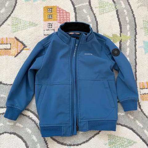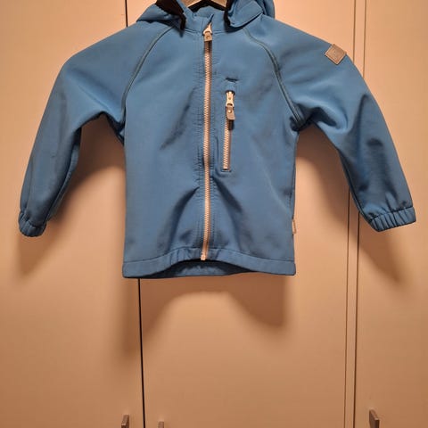 Siisti ja hyväkuntoinen softshelltakki koko 98. Huppu kiinnitetty neppareilla. On irroitettavissa. Kunto on perus siisti käytetty kunto. Takin vuoressa pehmeä nukkapinta.