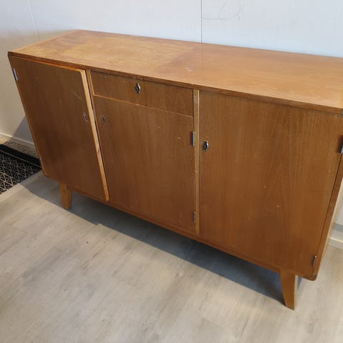 Laatikosto on ollut toisen laatikkokuution alla, joten päälliosaan on tullut reunoihin raapuja. Muuten hyväkuntoinen, pieniä käytön jälkiä.