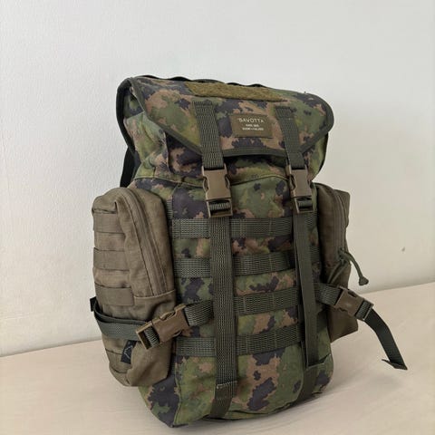 Markkinoiden huippuvalinta! Savotta Jääkäririnkka vihreällä värillä ja MOLLE-kiinnitysjärjestelmällä. Repussa on useita nauhakenttiä lisätaskujen ja varusteiden kiinnittämistä varten. Tuote on valmistettu Suomessa. Soveltuu esimerkiksi retkeilyyn, sotilas/reserviläiskäyttöön, vaelluksille ja muuhun ulkoilukäyttöön.